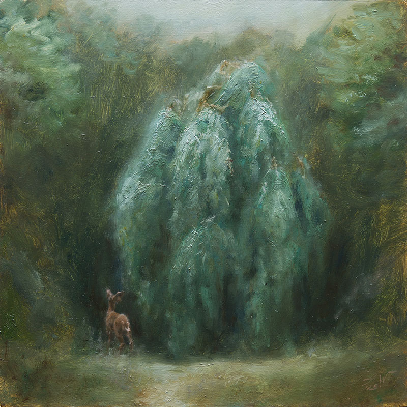 Young deer and the Weeping Willow • 30x30cm • oil on panel